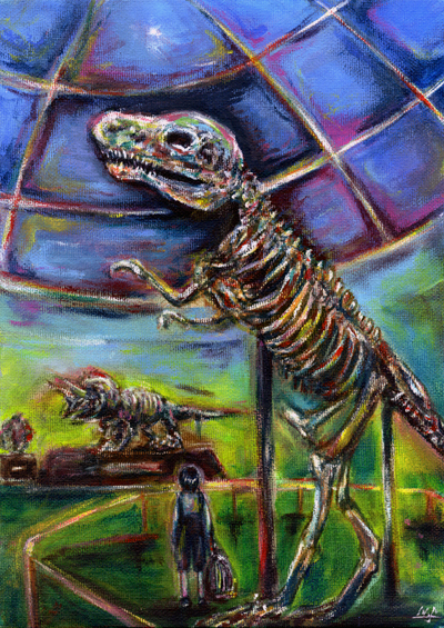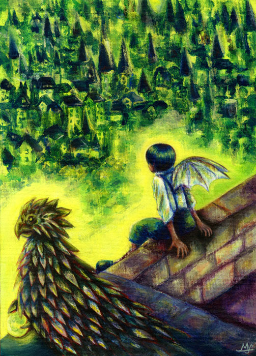 以前から『教会へ』や『博物館』で描いている”鳥かごを持った少年”の