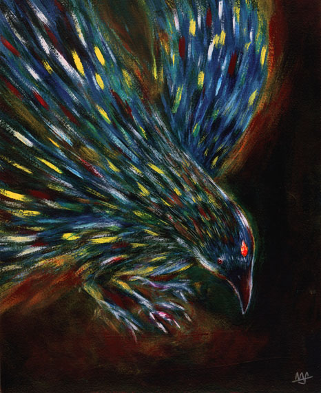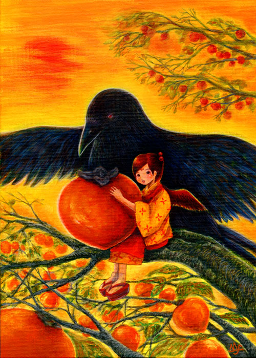 をつけ、全体的には太陽光から烏に変化するイメージで描きました。