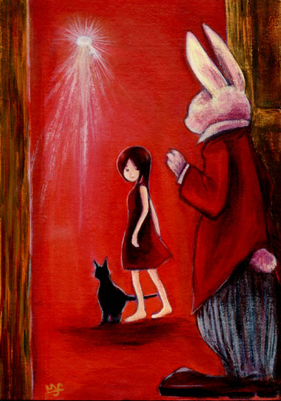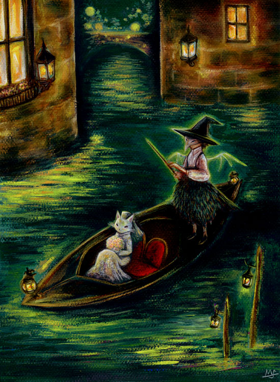 白猫の花嫁さんを花婿さんのところに送る途中です。