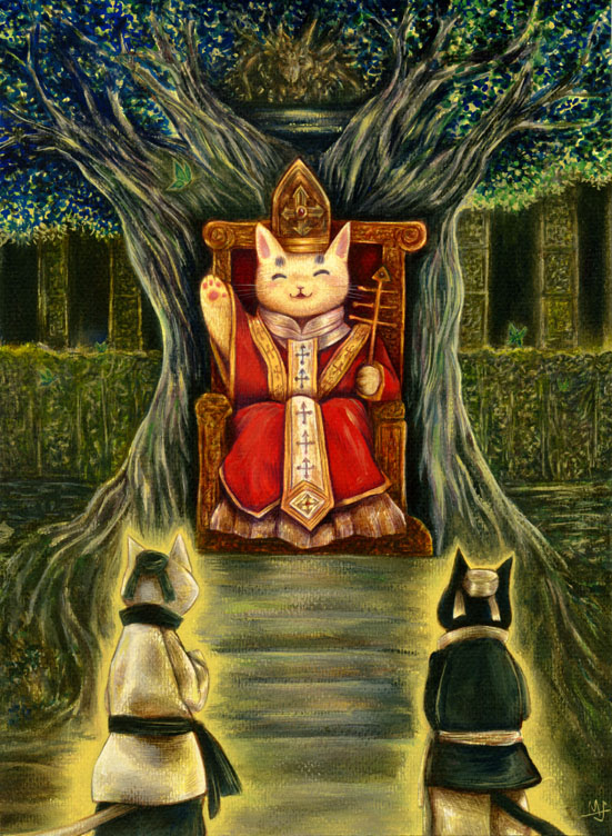 タロットネコシリーズの5番目、『法王』です。
