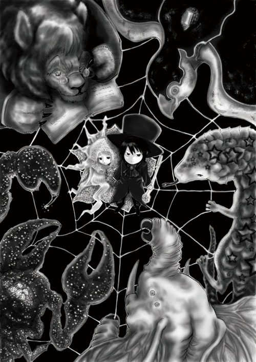 電撃用モノクロイラスト。よく見るとけっこうグロテスクなので苦手な方は遠目でどうぞ