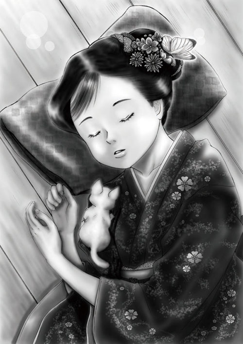 「女の子と大きな猫の王様」のイラストを描いたことがあるのですが、