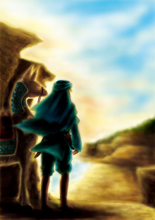 スキャナに入りきらなかったのですが原画は横幅がもう少しある絵です