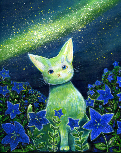 桔梗の花と星空の組み合わせを描いてみたくなりました。