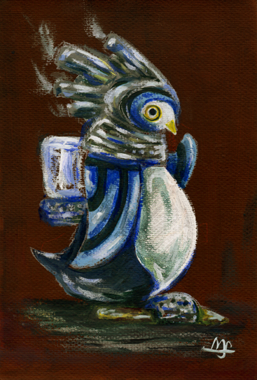 最初は頭に機械的な飾りを付けた鳥だったんですが